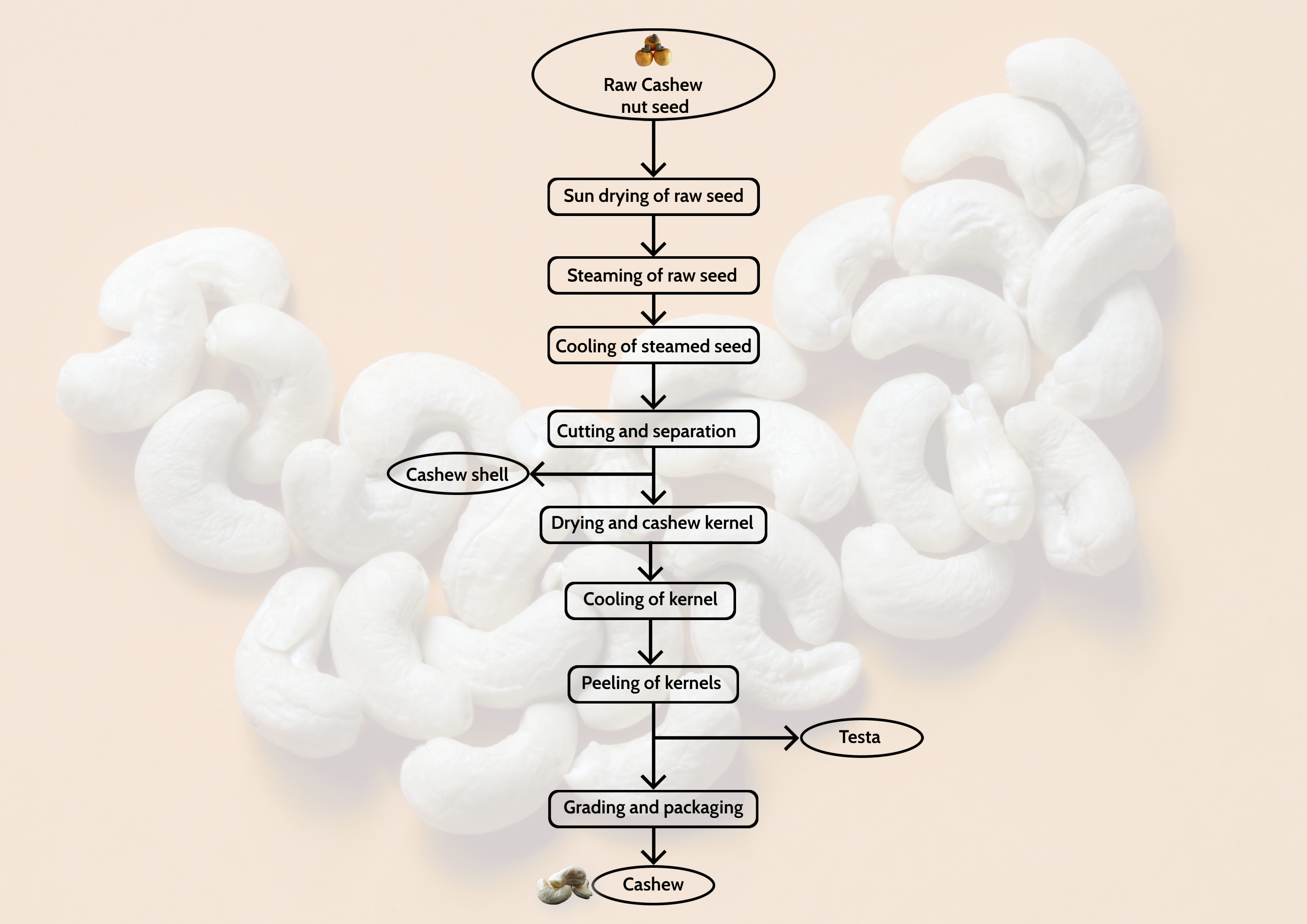 Our commitment to quality extends from cultivation to processing, ensuring that you receive cashew nuts that meet the highest standards. We follow a meticulous process to ensure freshness, taste, and nutritional integrity: