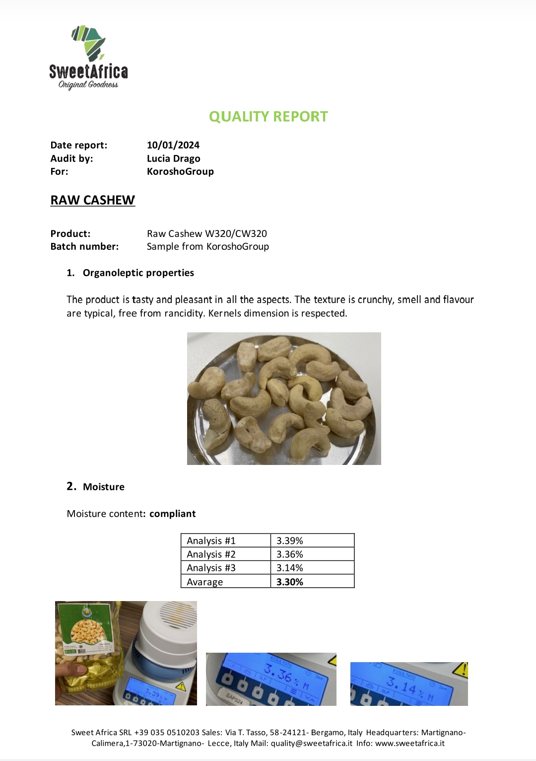 At the Korosho Group, we take pride in offering high-quality cashew nuts that meet international standards.